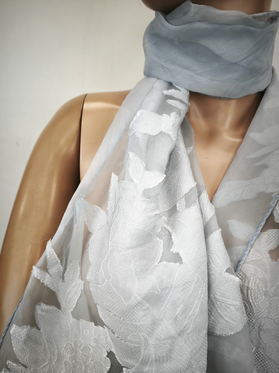 szalik żakardowy jedwabny ozdobny apaszka 100% jedwab 2231155 gołębia popiel