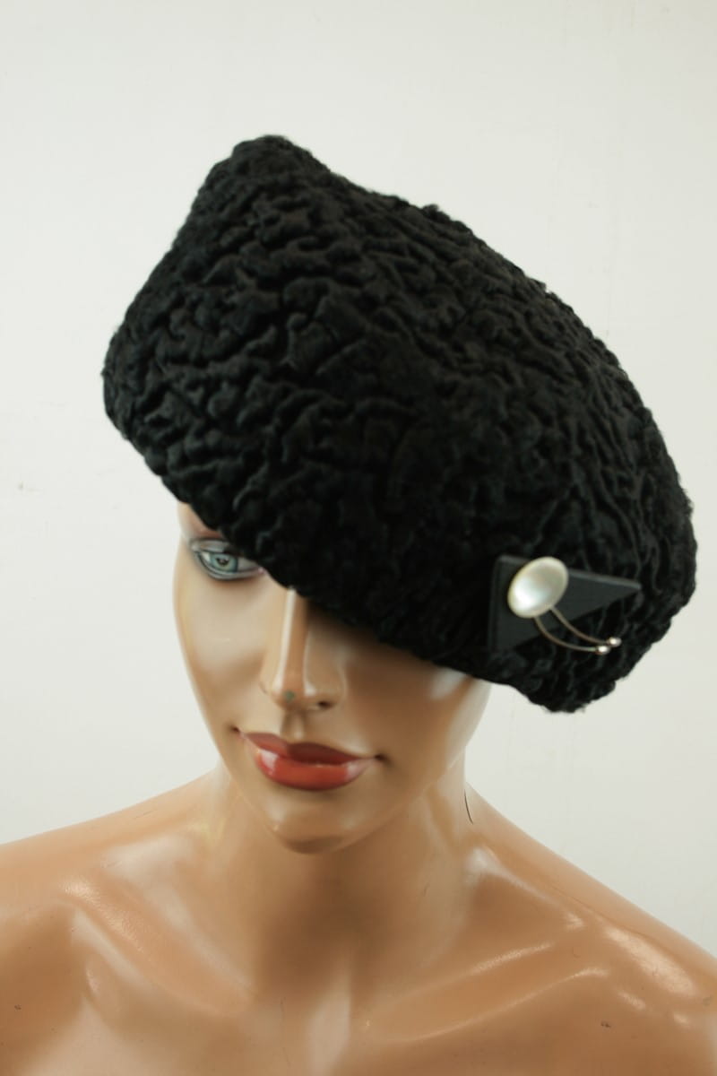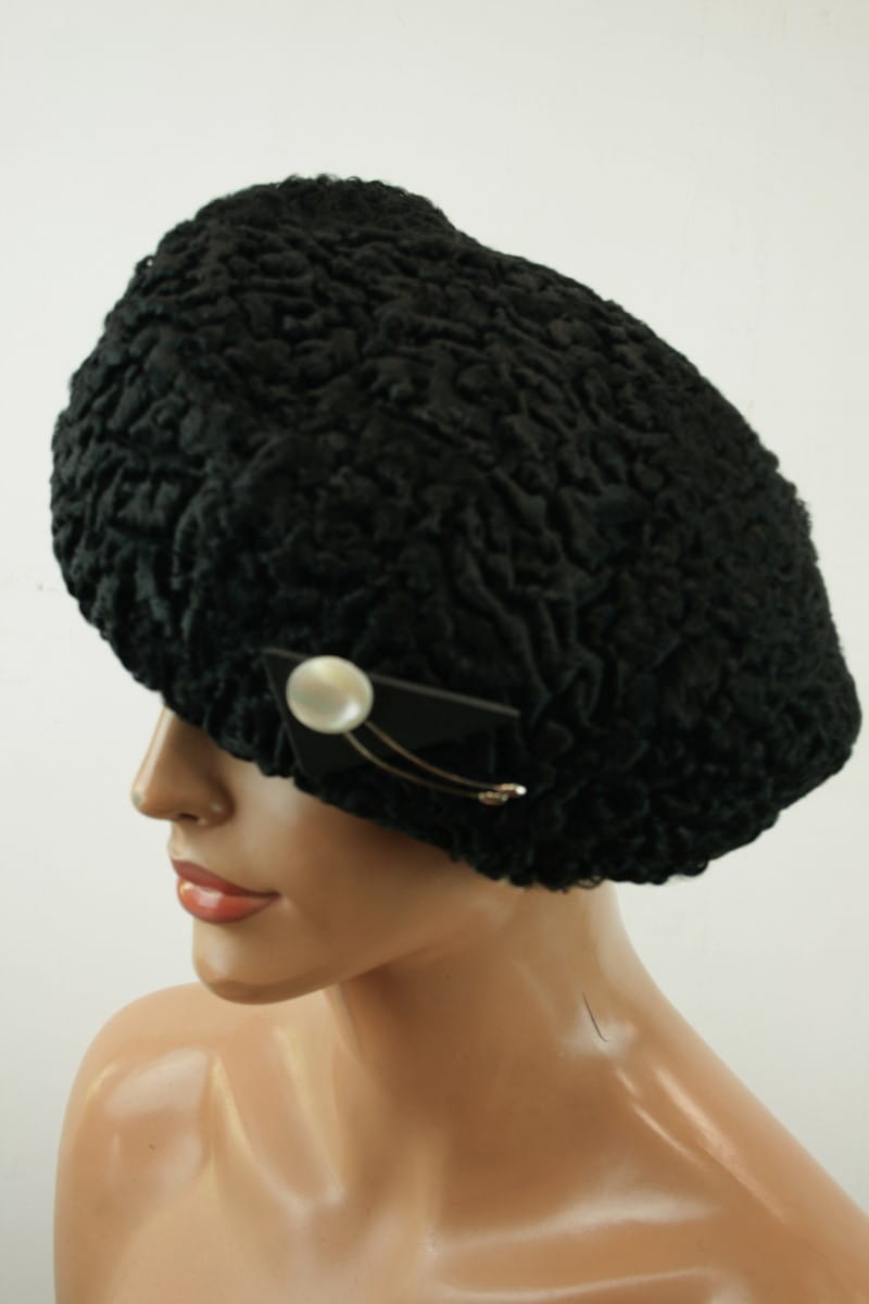 toczek beret karakuły naturalne 095465 / r.56-59 cm