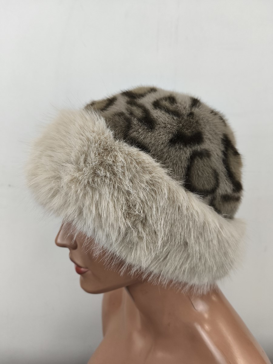 ultra lekka czapka futerko eko r.54-58 cm / 0205571 beż panterka