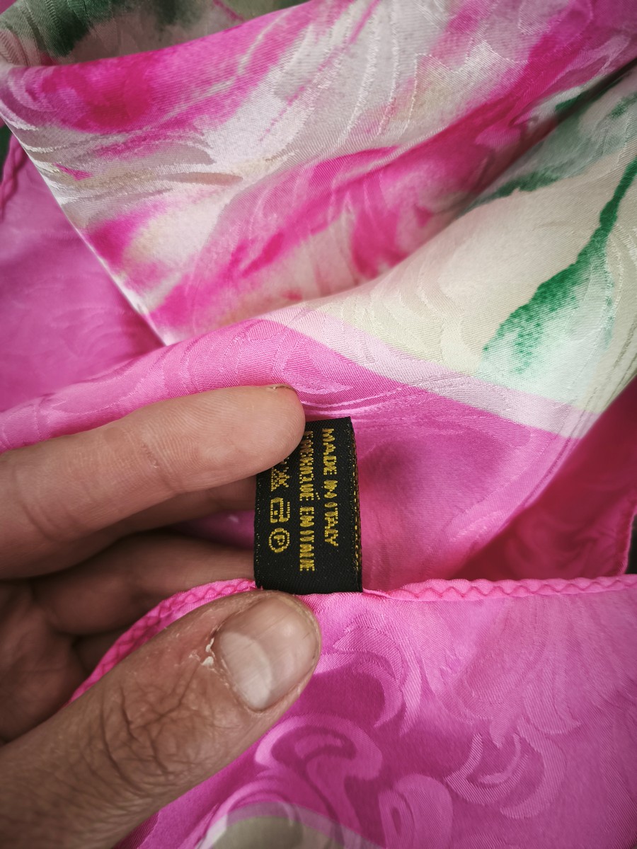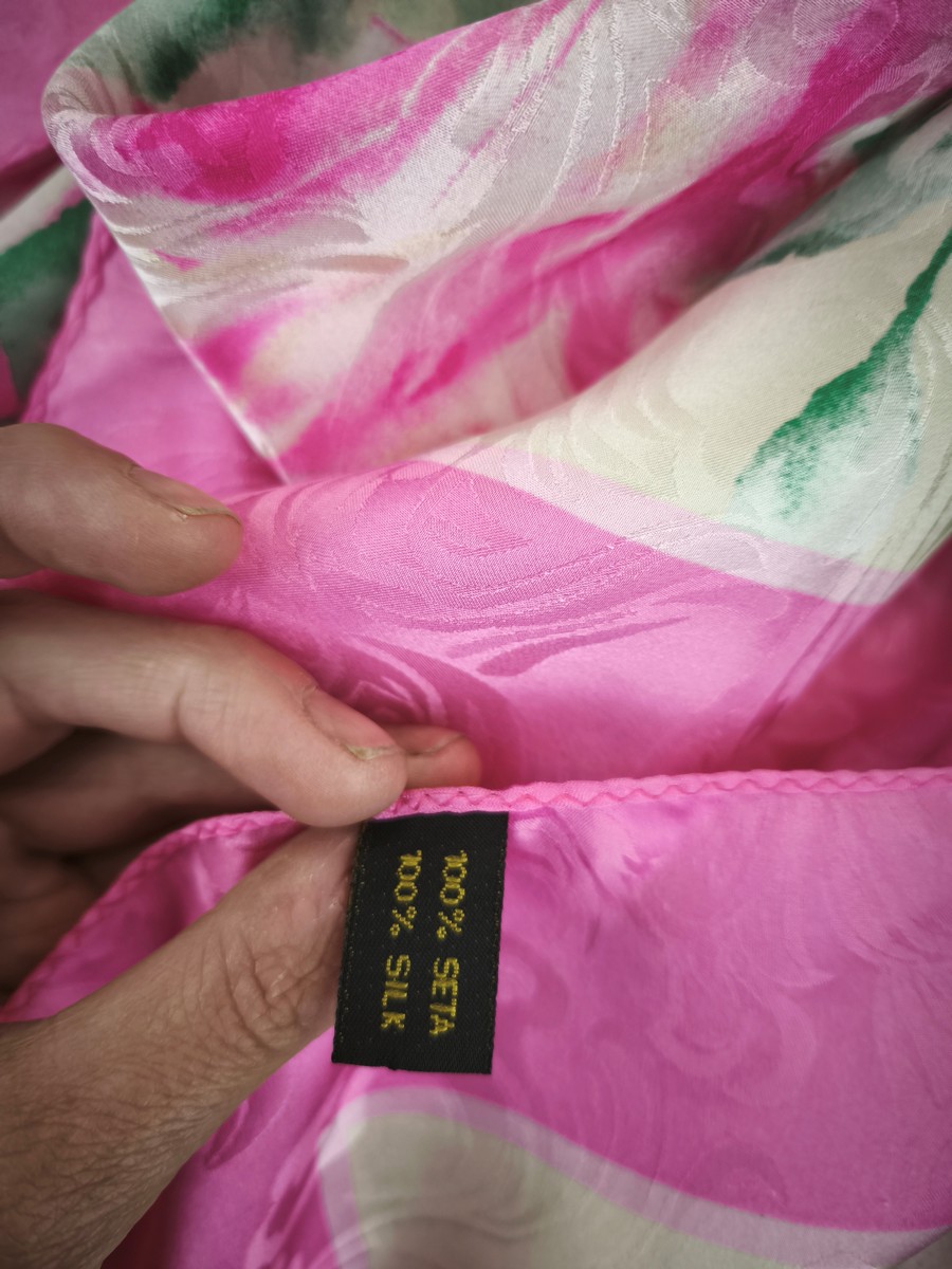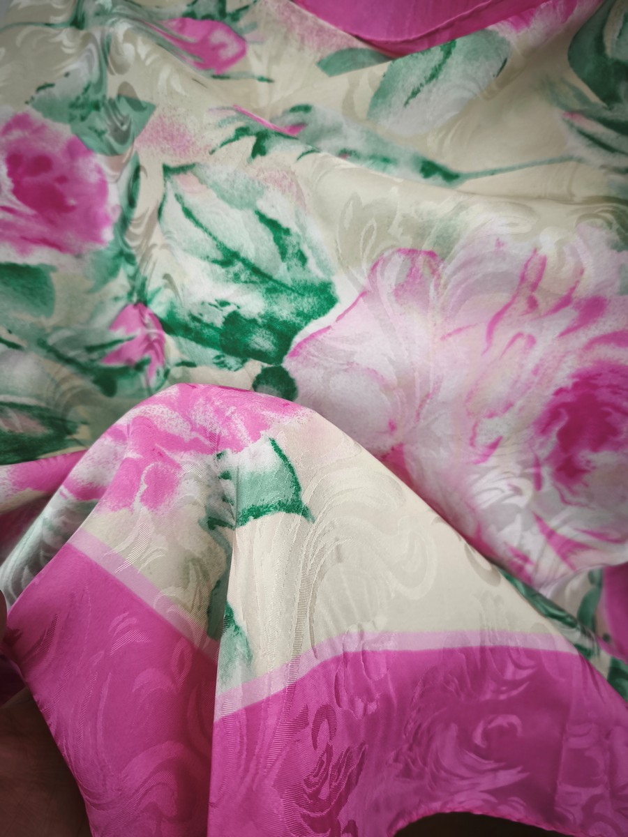 włoska jedwabna duża chusta apaszka żakard elegancka 90x90 cm ITALIA
