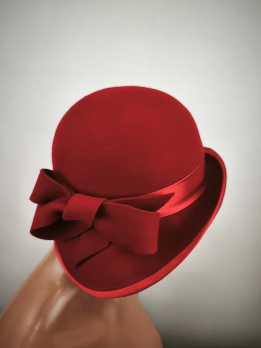włoski kapelusz elegancki wełniany asymetryczny ITALIA COMPLIT 12 / rozm.54-57 cm / 0084103 czerwony