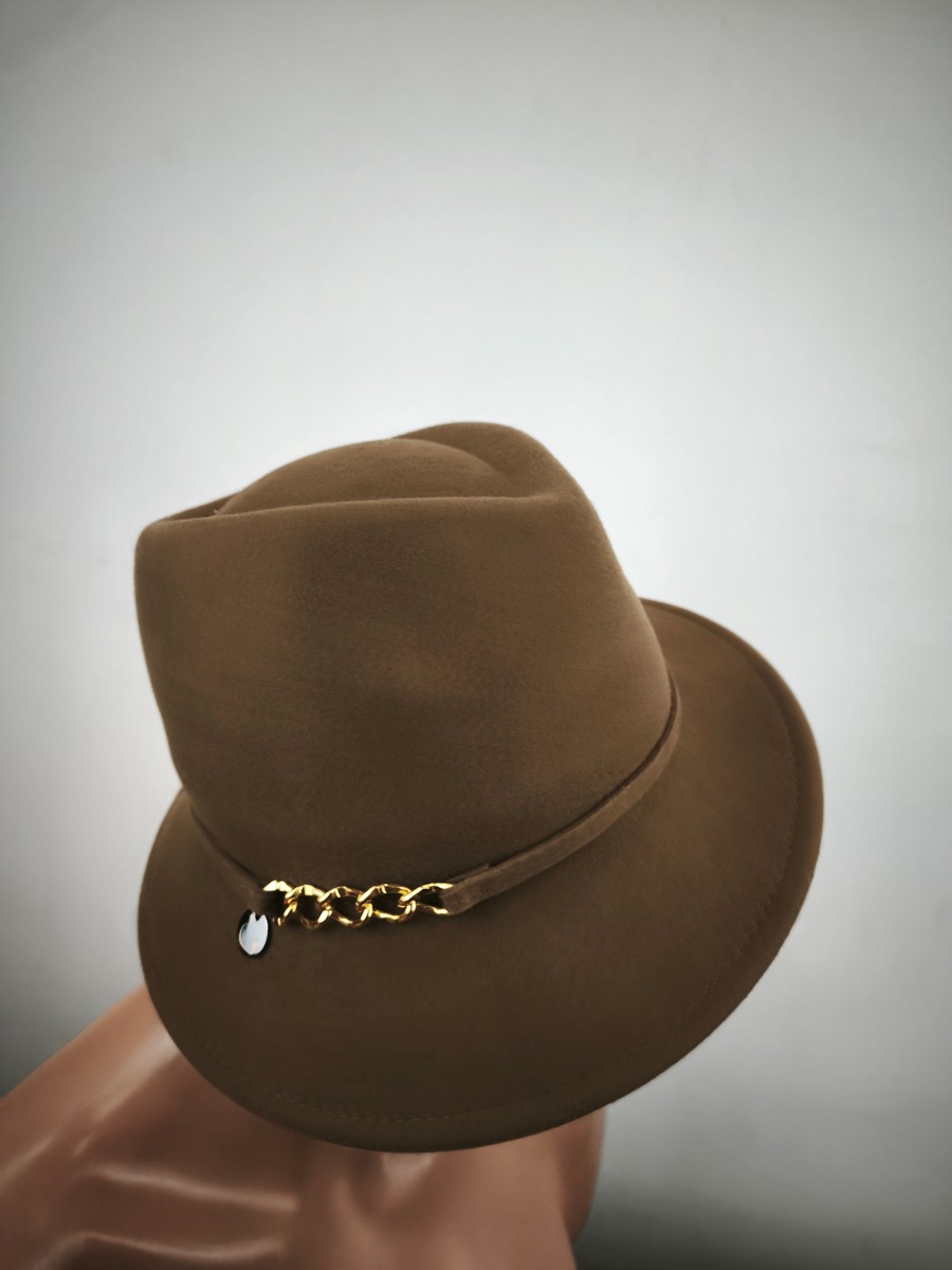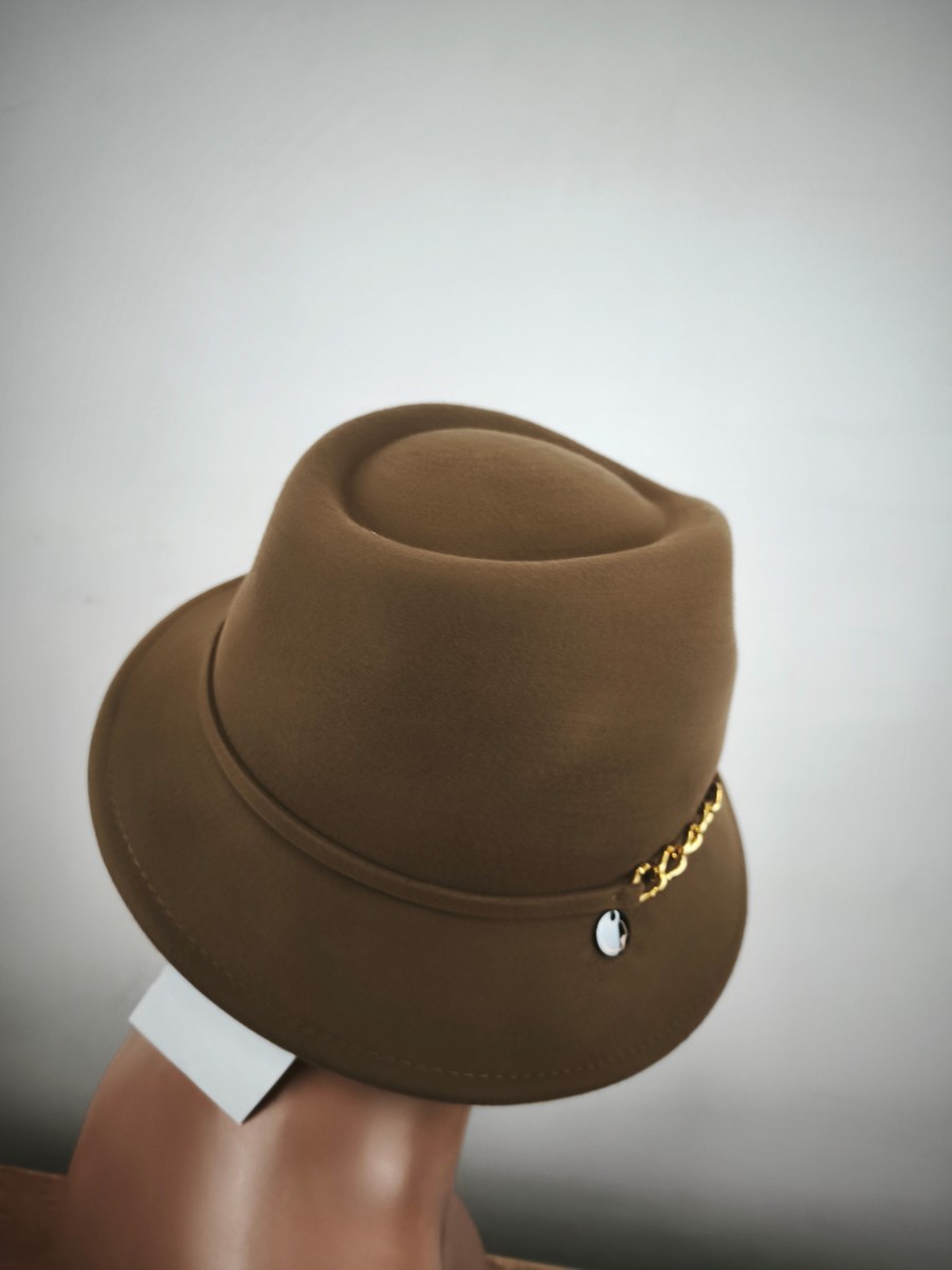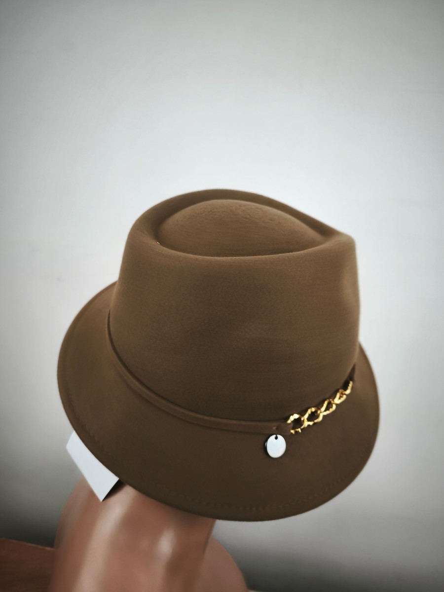 włoski kapelusz filcowy asymetryczny ITALIA COMPLIT r.53-57 cm / 14005014 brąz tabaczkowy tabaka
