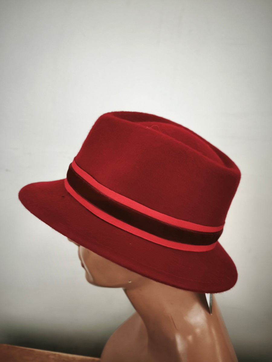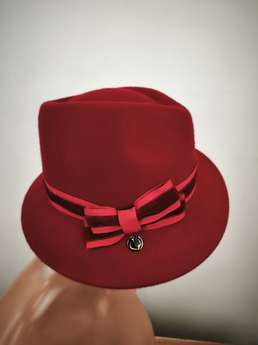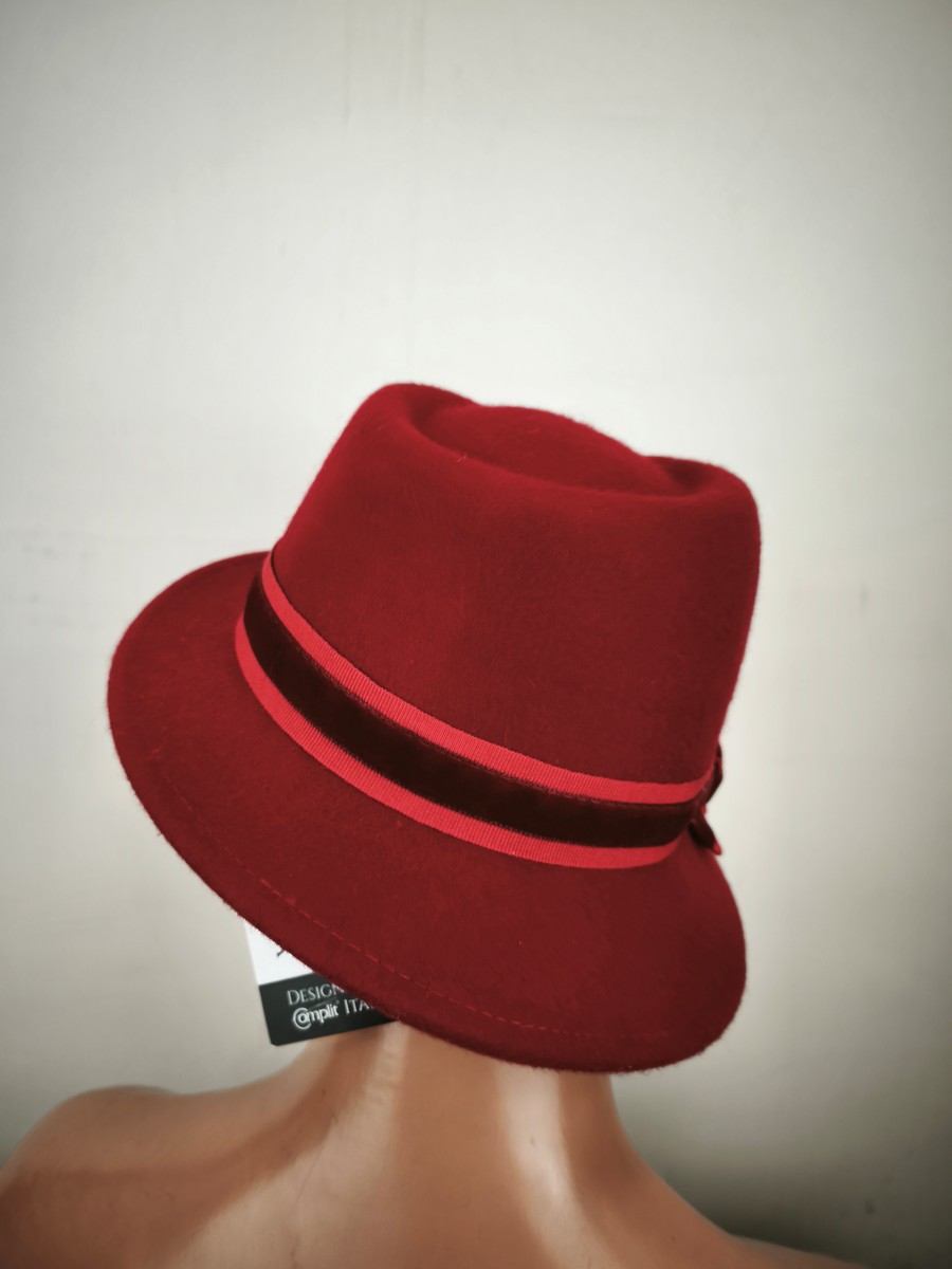 włoski kapelusz filcowy asymetryczny ITALIA COMPLIT r.54-57 cm / 1400302 czerwony stonowany