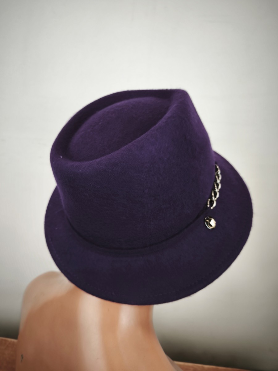 włoski kapelusz filcowy asymetryczny ITALIA COMPLIT r.54-57 cm / 1400303 śliwka węgierka