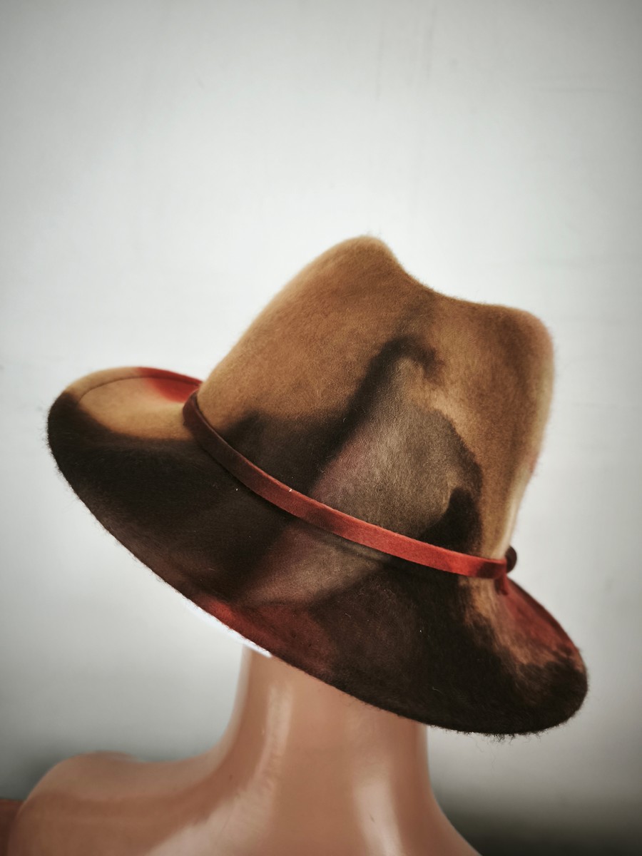 włoski kapelusz filcowy cieniowany filc ITALIA COMPLIT r.54-58 cm / 1400506 rudy-beż-brąz
