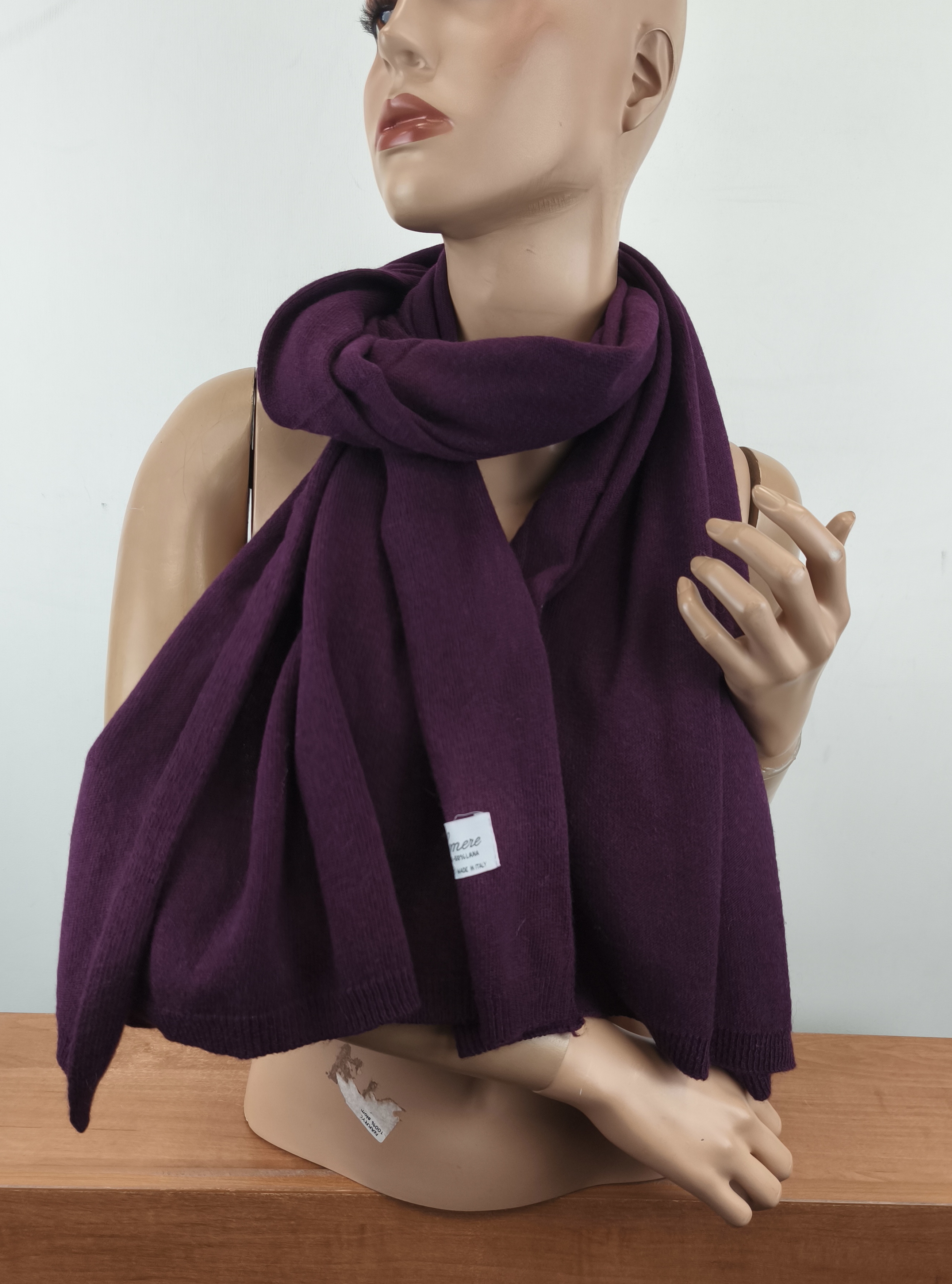 włoski szal kaszmir z wełną w etui ITALIA 0032036 śliwka