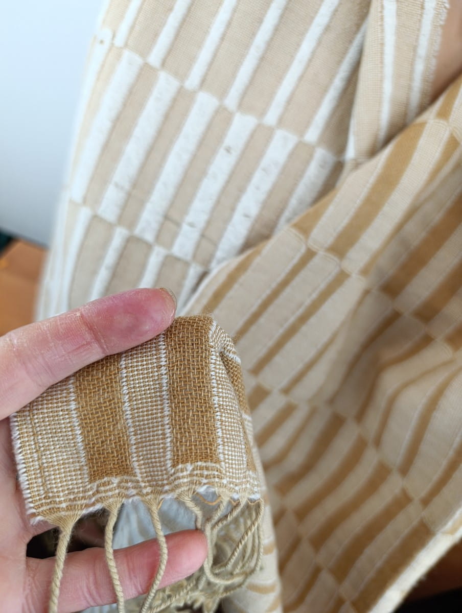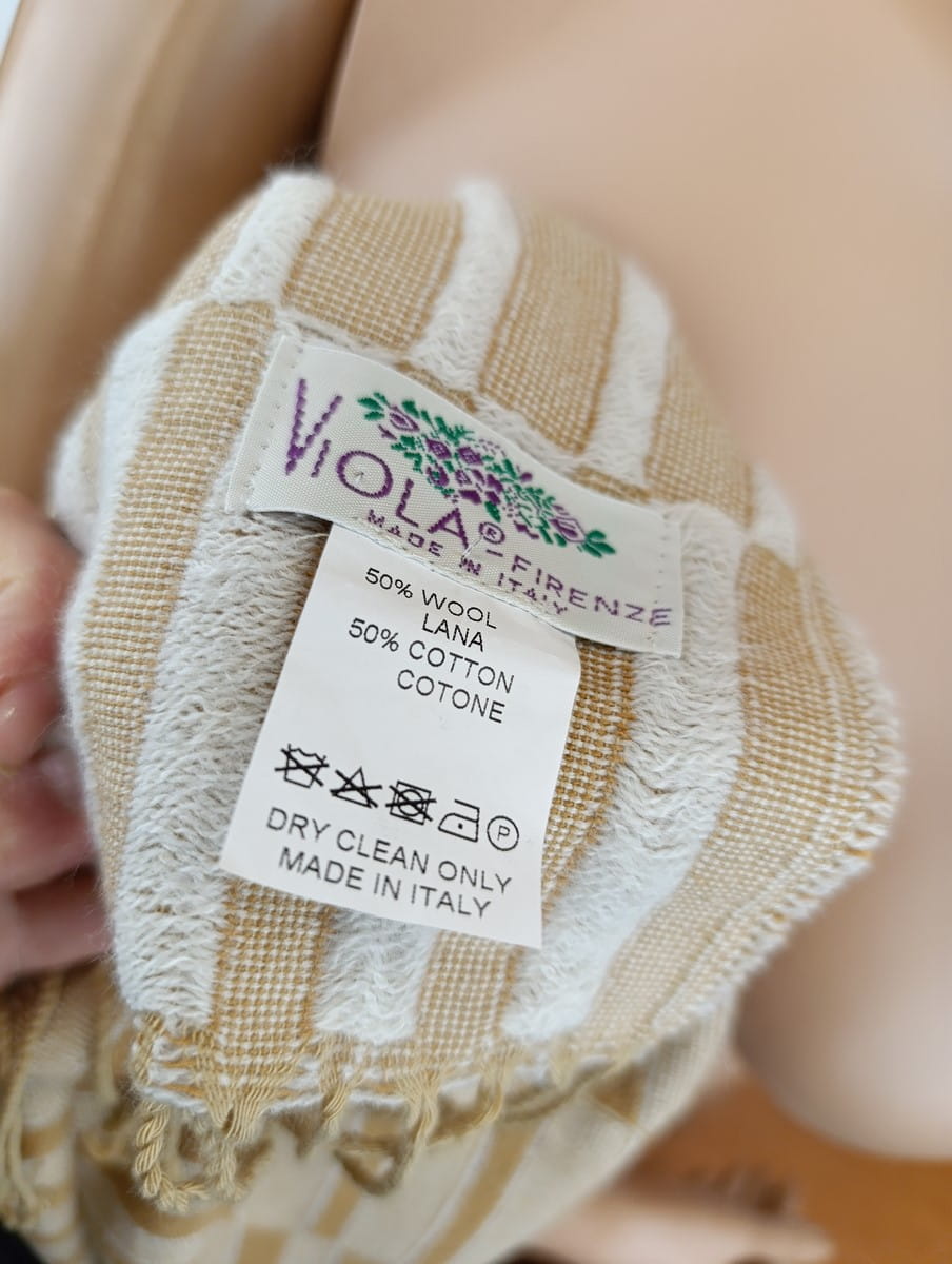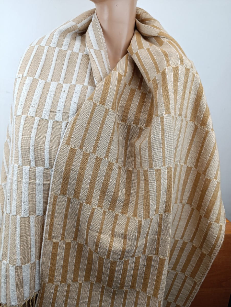 włoski szal we wzory cieplejszy 048205 wełna z bawełną beż